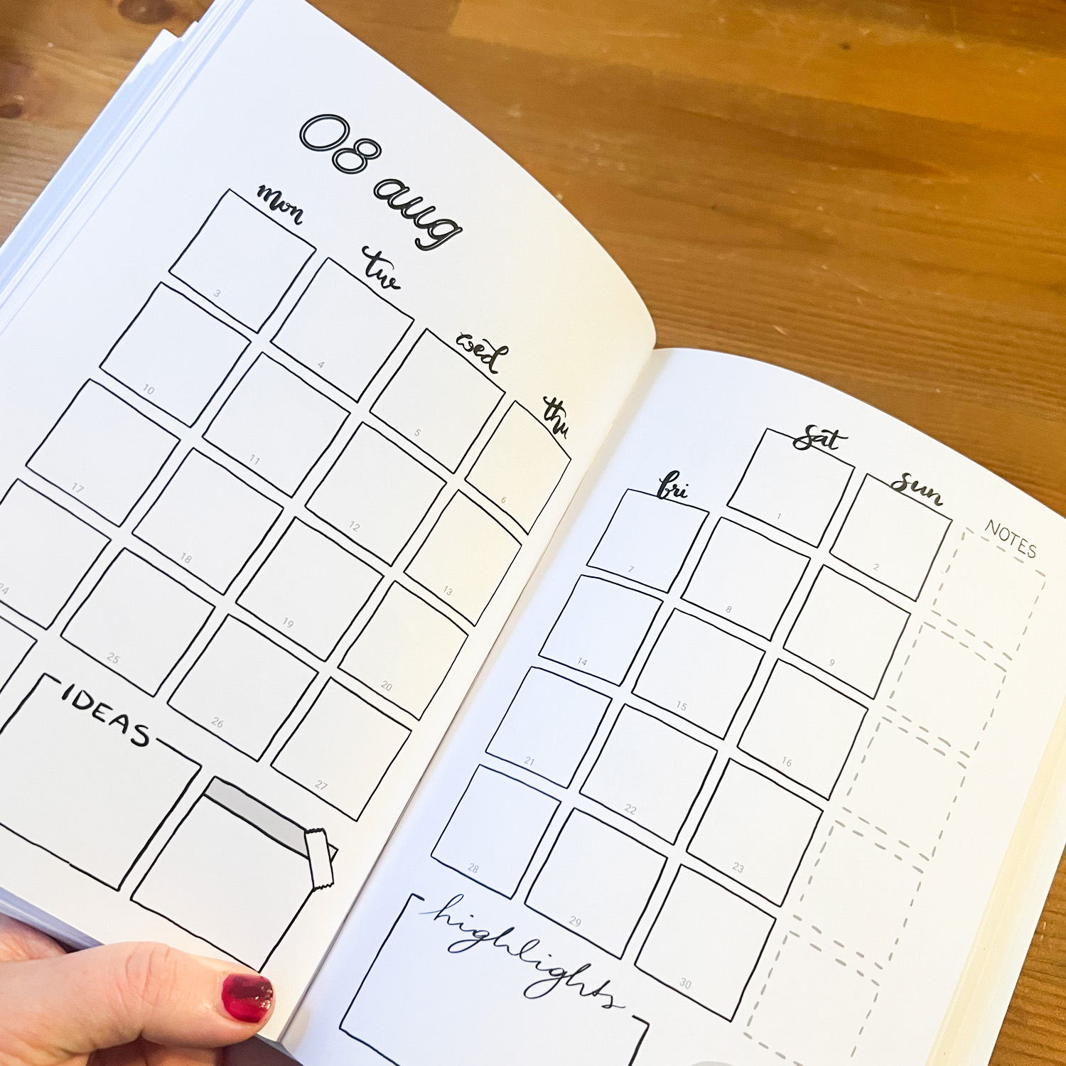 handgezeichneter Terminplaner 2026 / Ausmalbuch